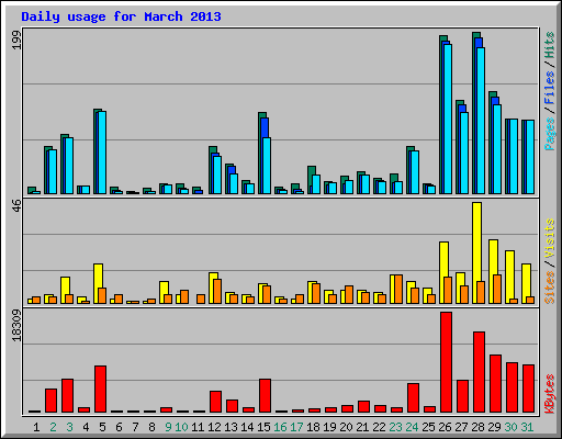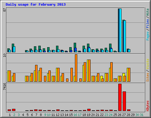| Day | Hits | Files | Pages | Visits | Sites | KBytes | ||||||